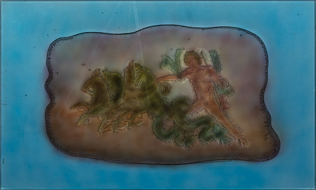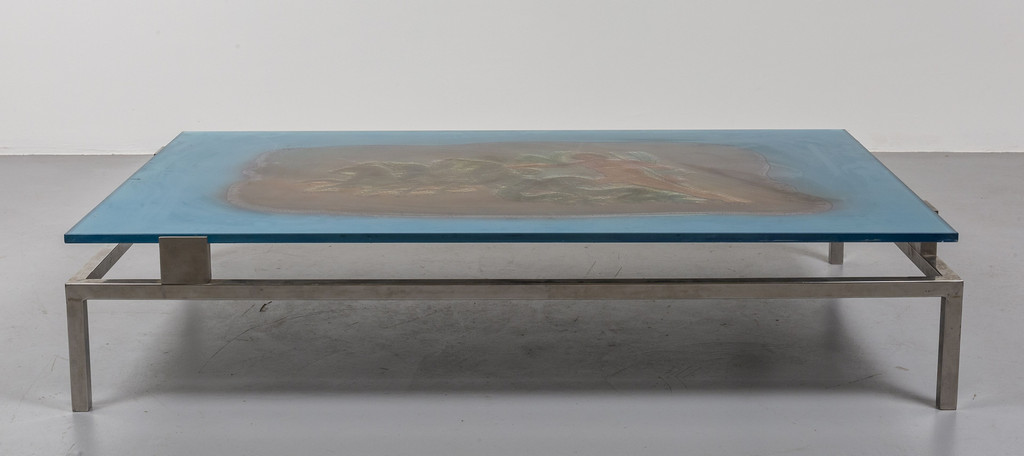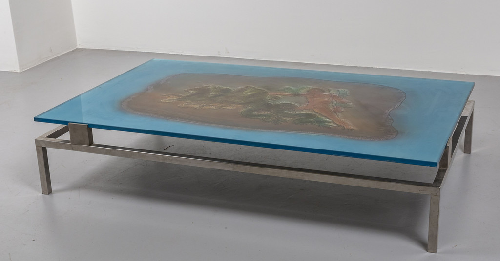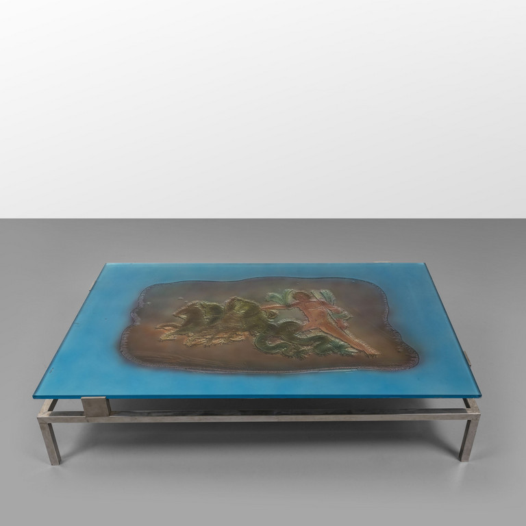 Ottone cromato lastra di cristallo incisa e retro dipinta.