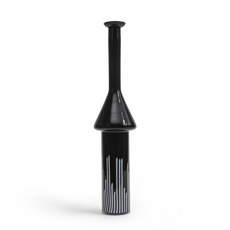 Una bottiglia 'sherazade' in vetro nero e canne lattimo alla base 1988 Altezza cm. 41