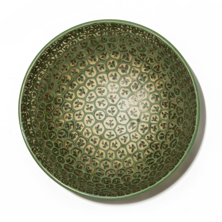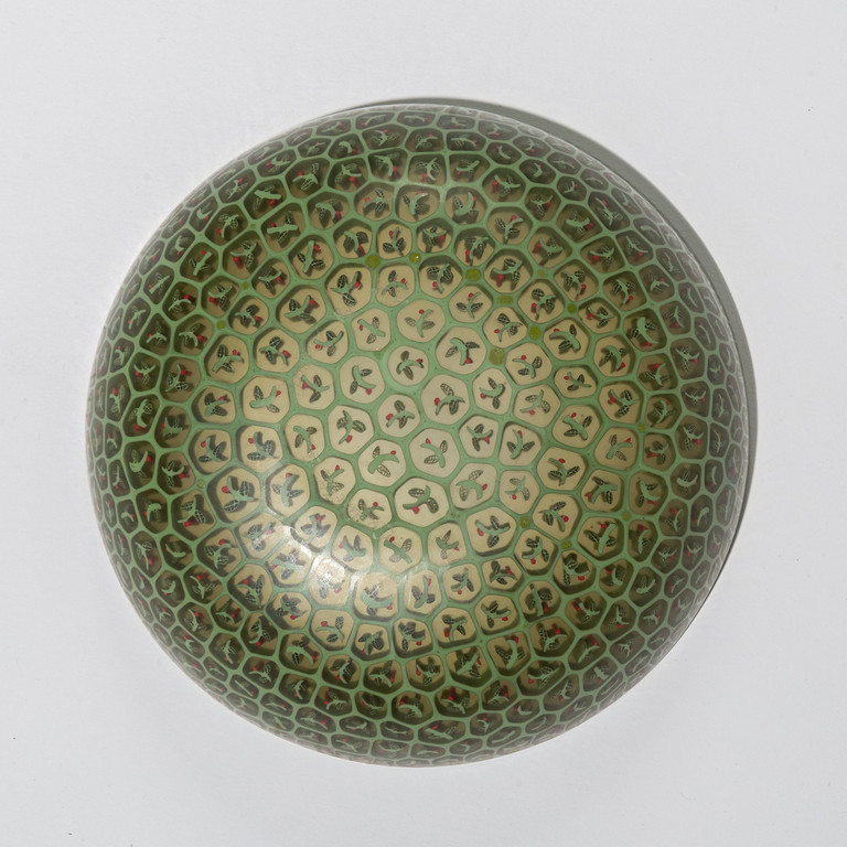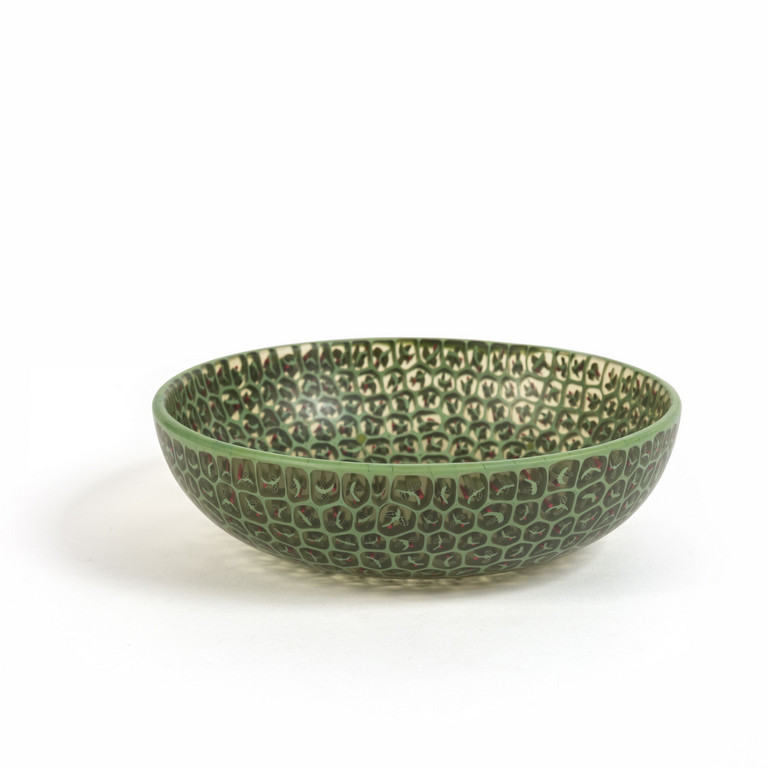 Una rarissima coppa a soggetto di rametto con bacca in vetro a murrine (completamente battuta)