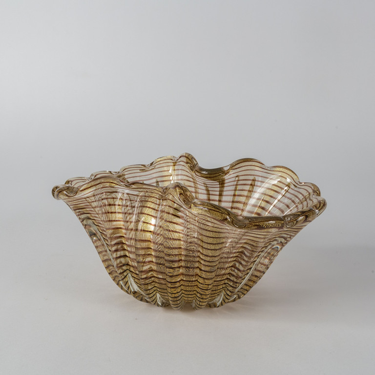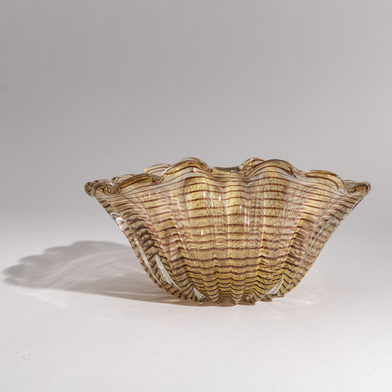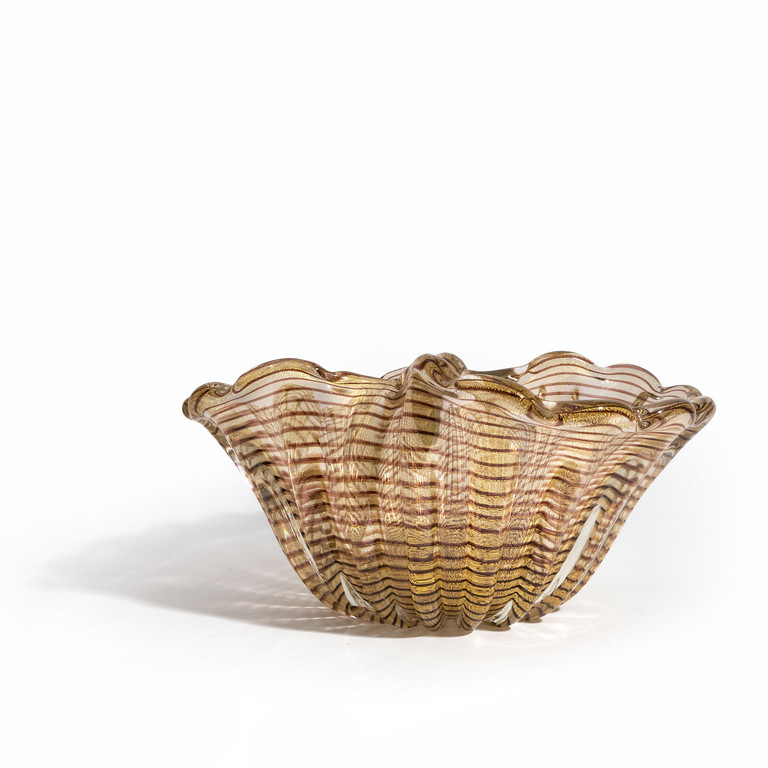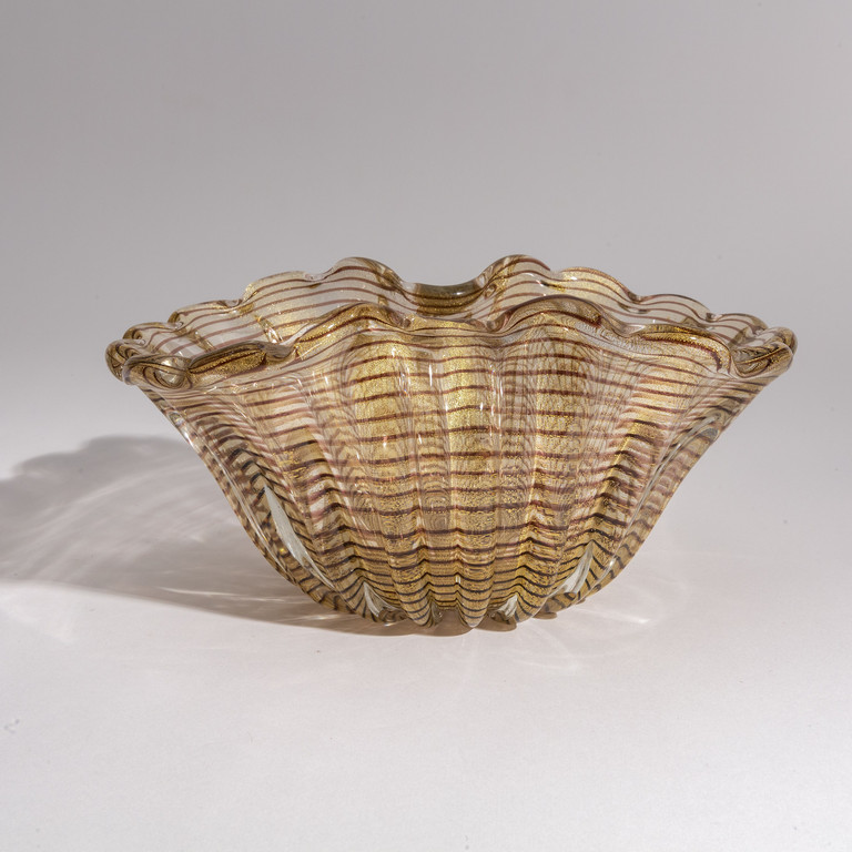 Una coppa 'Zebrata' con applicazione di foglia oro anni '40
