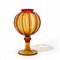 Un grande vaso in vetro ambra trasparente a boccia su alto piede e applicazione di grossi filamenti in vetro rosso circa 1925