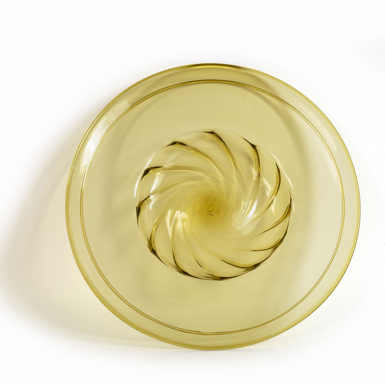 Un grande piatto di vetro soffiato trasparente topazio anni '30.