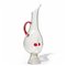 Una grande brocca in cristallo con manico a filigrana rossa e due anelli applicati a somiglianza di occhi circa 1950