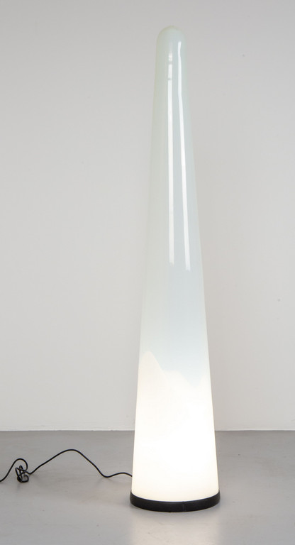 Vetro soffiato opalescente. Base rivestita in gomma.