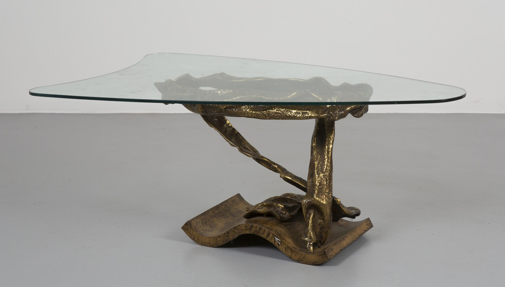 Basamento di lamierino di acciaio inscatolato e verniciato struttura in fusione di ottone piano in cristallo.