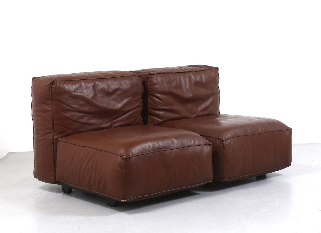 Strutture in legno parti imbottite rivestite in pelle.