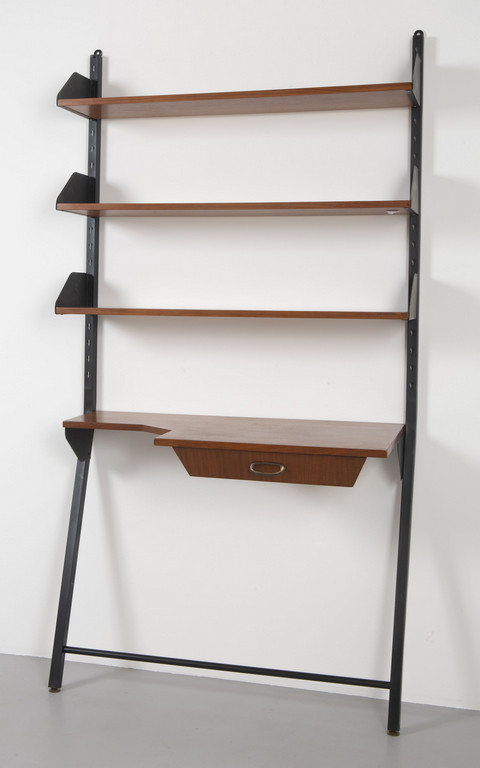 UNA LIBRERIA DA PARETE CON PIANO DI LAVORO anni '60.