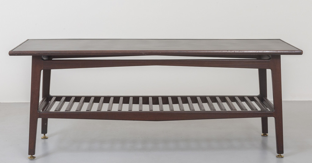 Legno di mogano tinto all'anilina piedini regolabili di ottone e piano in laminato.
