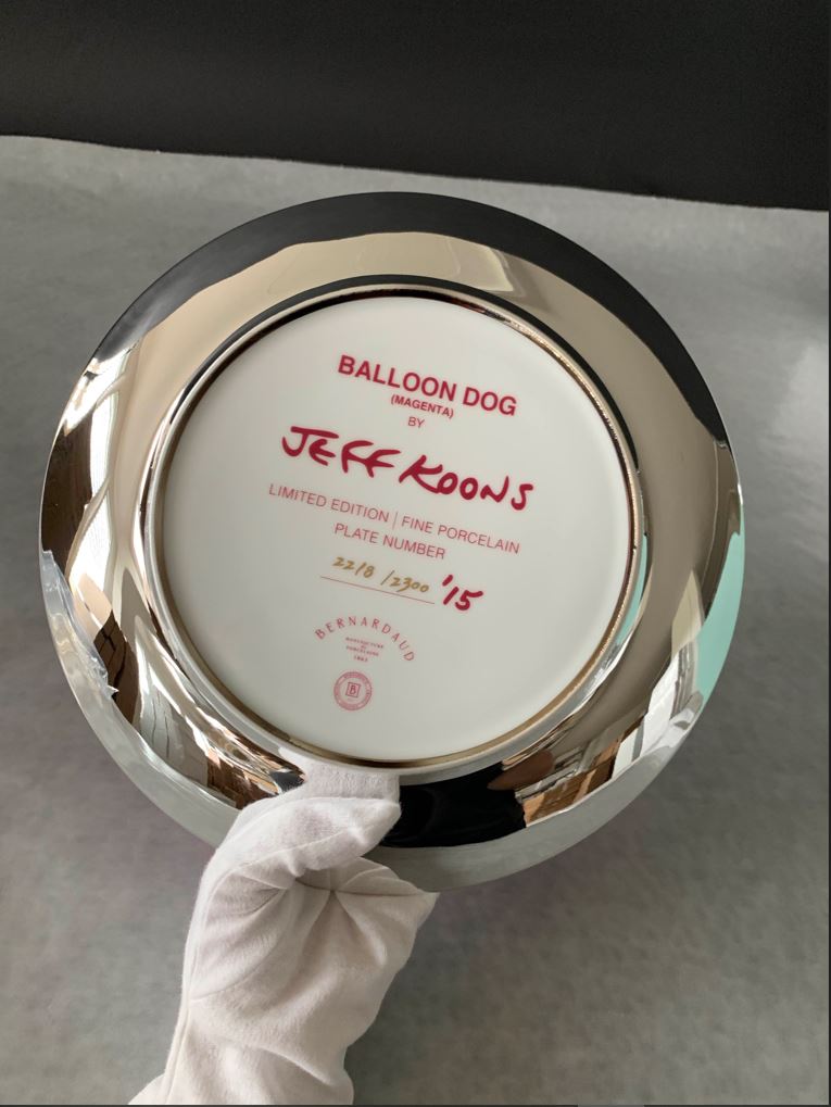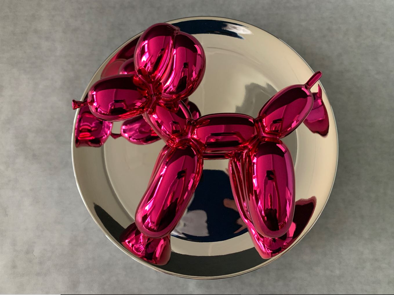 "Balloon Dog (Magenta)". Year 2015. Porcelain with chromatic coating. Edition 2218 of 2300. Size 26.6 x 26.5 x 12.7 cm (10.5 x 10.5 x 5 in). Signed, titled, dated and numbered on the underside. The artwork is accompanied by a certificate issued by the producer. Edition Bernardaud, Limoges (France). Provenance: Private Collection, Zug (Switzerland).