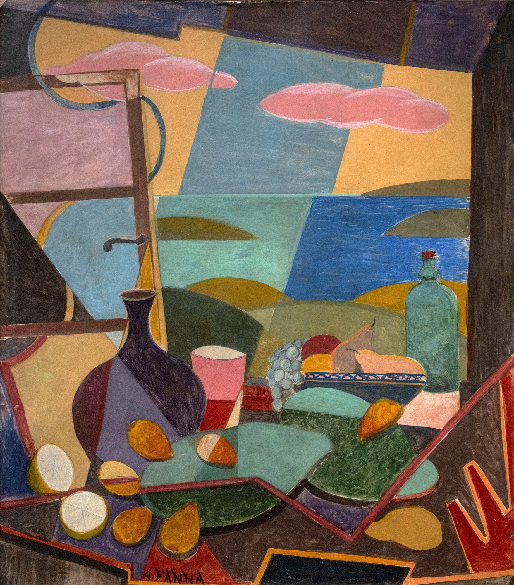 "Natura morta (Still life)". Tempera on paper. Year 1935-36. Size 45x51cm. Signed lower center. The artwork is accompanied by the certificate of authenticity released by Archivio Storico dei Futuristi Siciliani. Provenance: Private Collection, Rome (Italy).