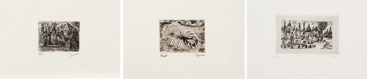 ZANCANARO TONO Padova 1906 - 1985 Soggetti vari lotto di 3 acqueforti es. 9/50 - p.d.a. 6x8 - 8x11 - 15x9 tutte firmate e numerate in basso