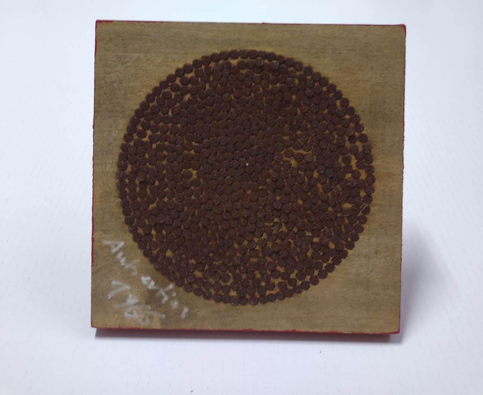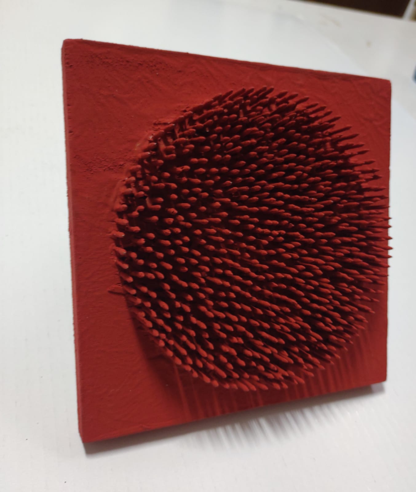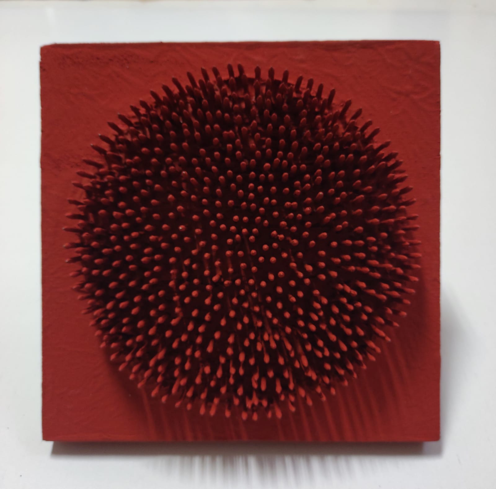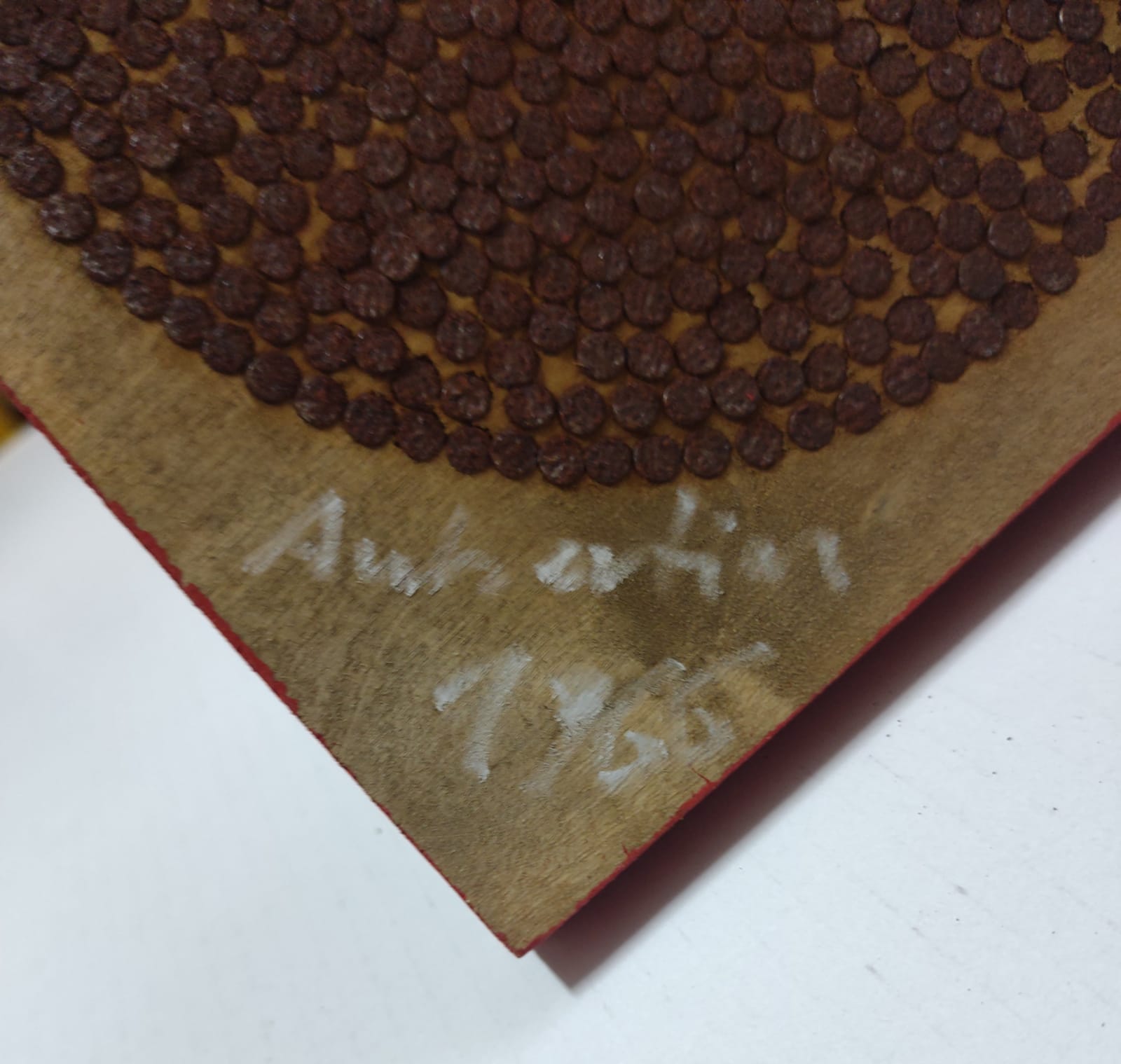 "Tableau clous". Year 1966. Nails on board. Size 20x20 cm. Unique piece. Signed and dated on the back. The artwork is accompanied by the certificate of authenticity released by Archivio Opere Bernard Aubertin, Brescia. Provenance: Private Collection, Milan.