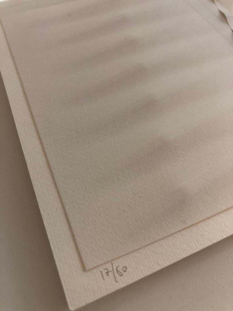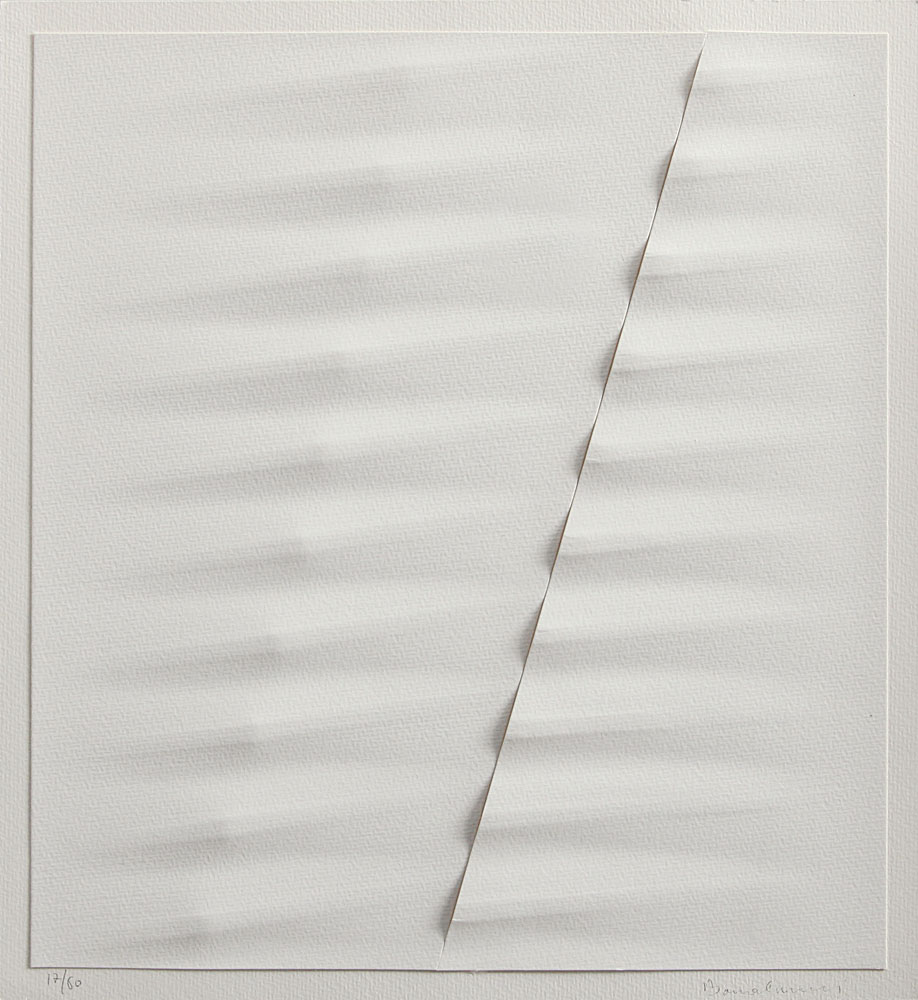 Untitled. Relief cardboard on paper. Size 31.5x28.5. Edition 17 of 60. Signed lower right and numbered lower left. The artwork is located in Alessandria, Italy.