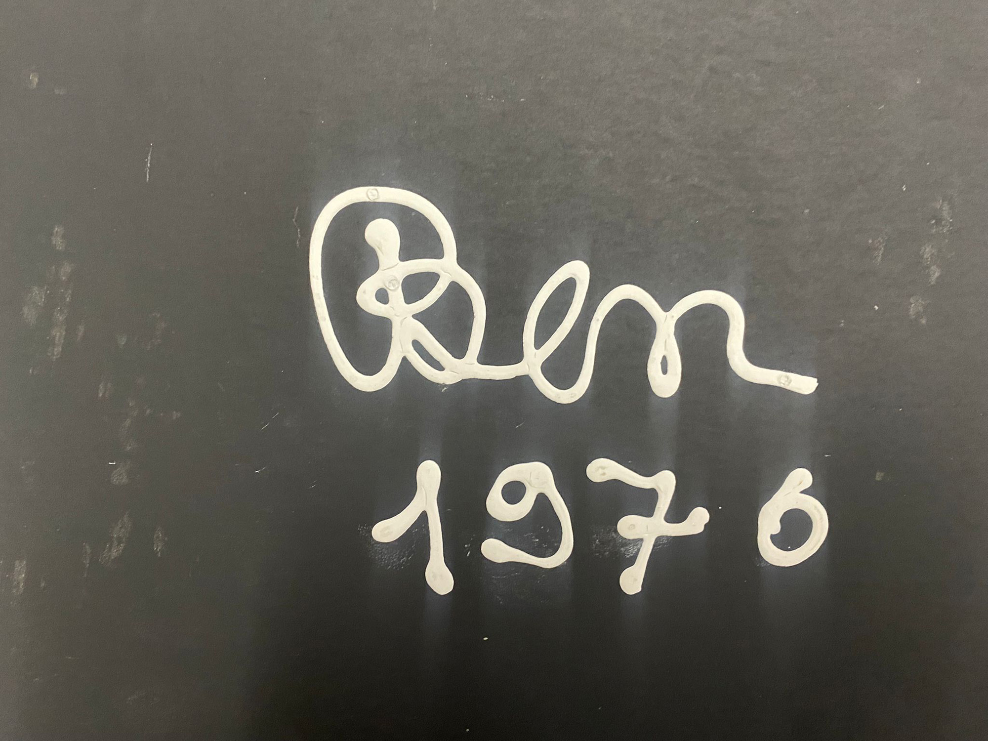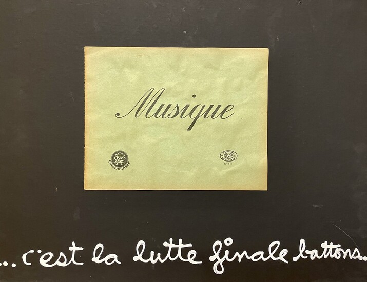 "C'est la lutte finale battons". Year 1976. Collage and drawing on cardboard, dated and signed on the back. Size 34.5 x 44.5 cm. Provenance: Private Collection, Arezzo (Italy).