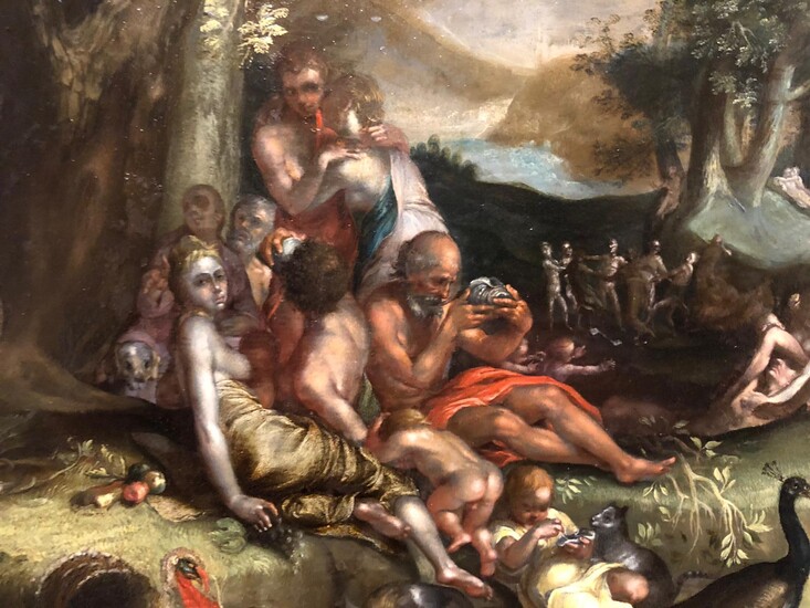 "The golden age". Oil on copper. Size 62,50 x 47,50 cm. Reference bibliography: Marcel G. Roethlisberger, Abraham Bloemaert and his sons, paintings and prints, Doornspijk Dovaco, 1993, vol. I, pp. 115-118, vol. II, tav, 119-120, cat. 70, cat. D9.The work will be included in the forthcoming catalogue addenda.The artwork is accompanied by a text by Marcel Roethlisberger, March 30th 2006. Provenance: Private Collection, Amsterdam.