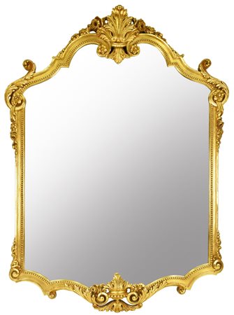 SPECCHIERA in legno intagliato e dorato, finemente decorato con motivi...