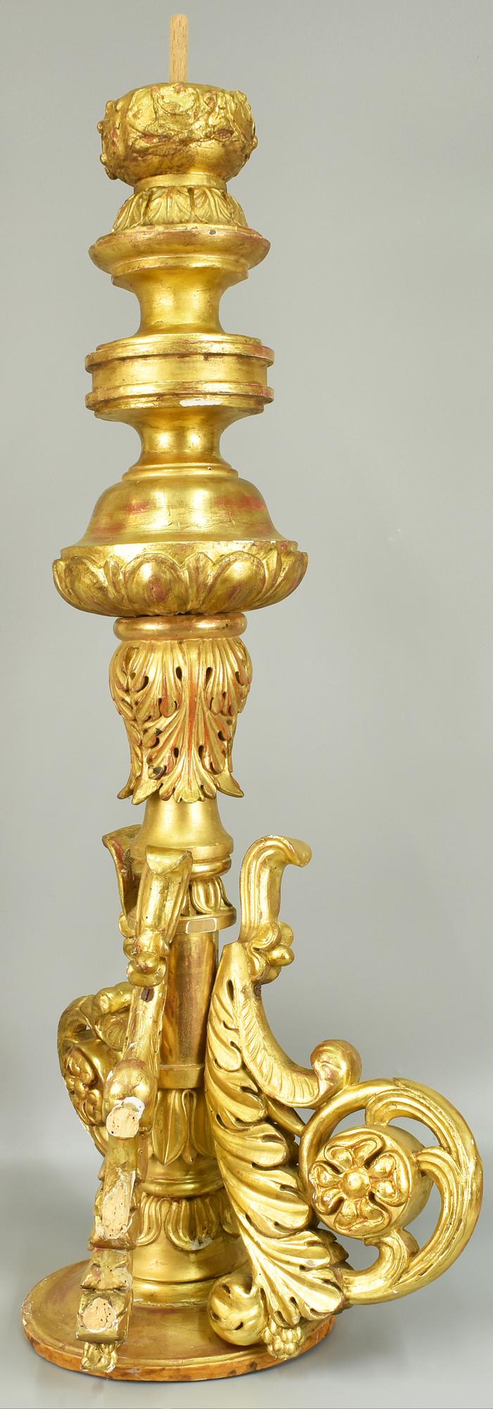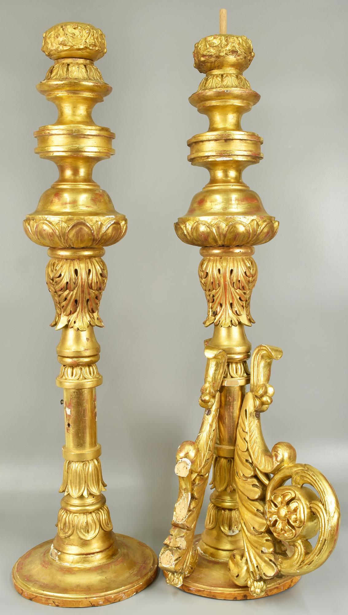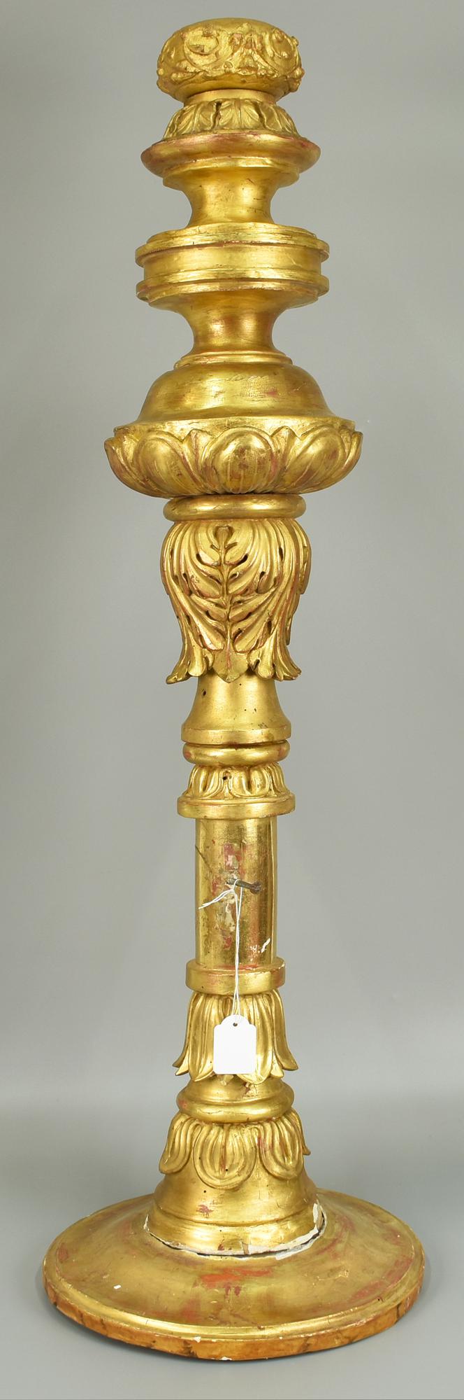 LOTTO DI DUE ELEMENTI DECORATIVI in legno intagliato e laccato h cm 95 diam...