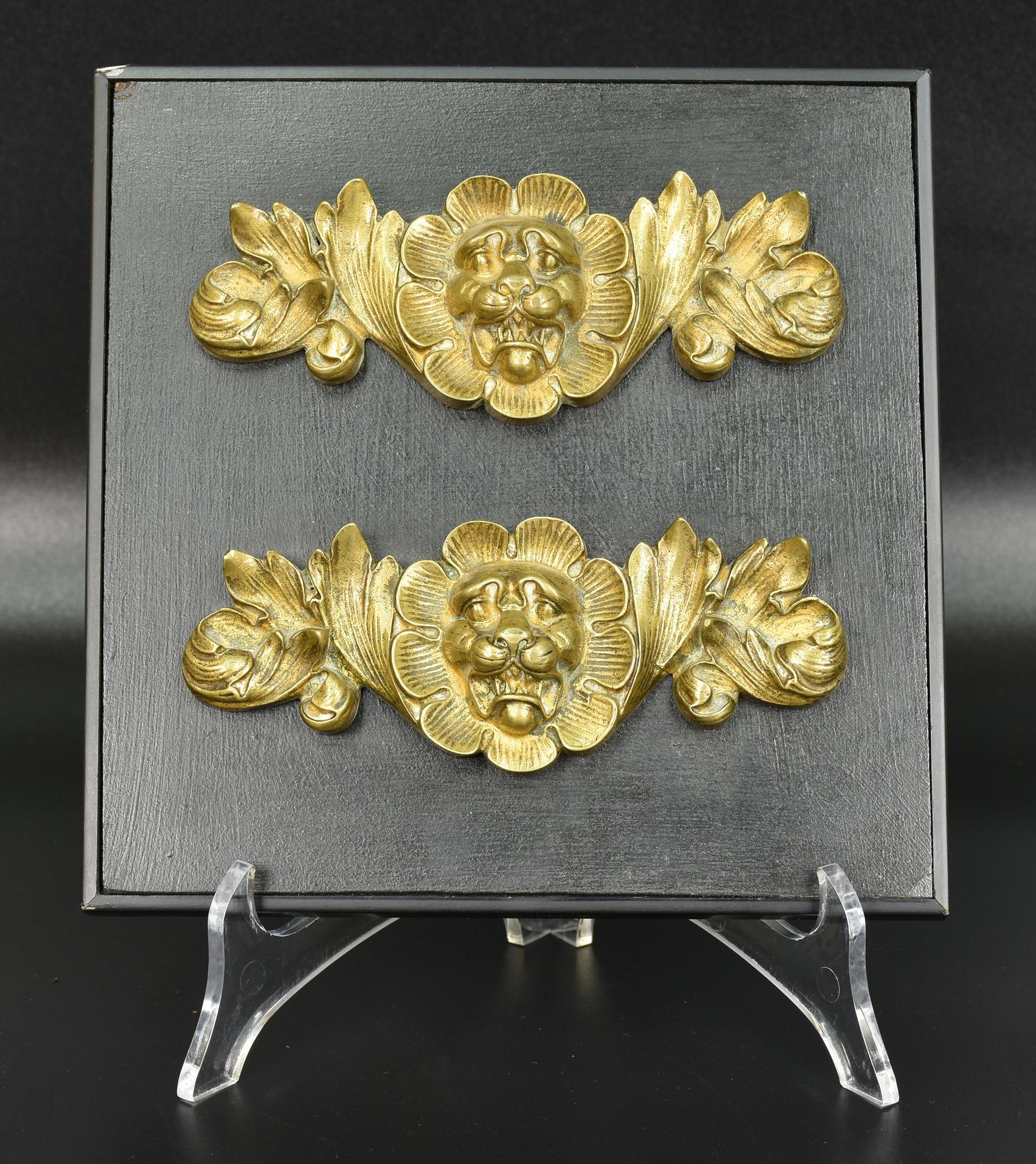 COPPIA DI FREGI IN BRONZO A GUISA DI LEONI