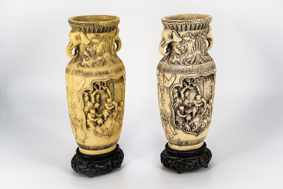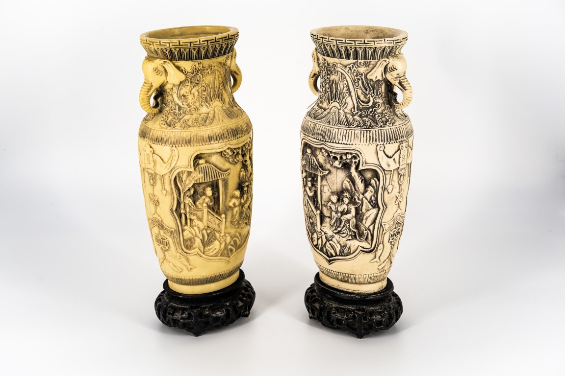 Coppia di vasi in avoriolina