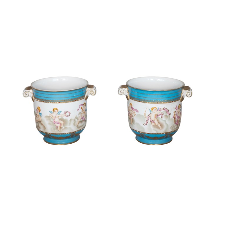 Coppia di cachepot in porcellana policroma