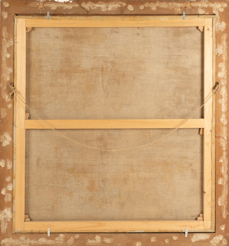 Il dipinto è completo di cornice settecentesca che esalta l'armonia compositiva della scena.