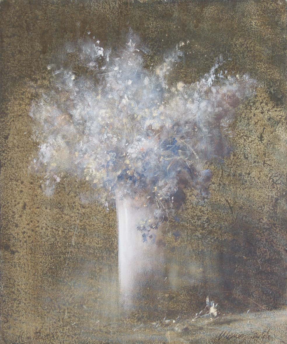MASSAGRANDE MATTEO Padova 1959 Vaso di fiori tecnica mista su tavola 60x50 firma in basso a destra