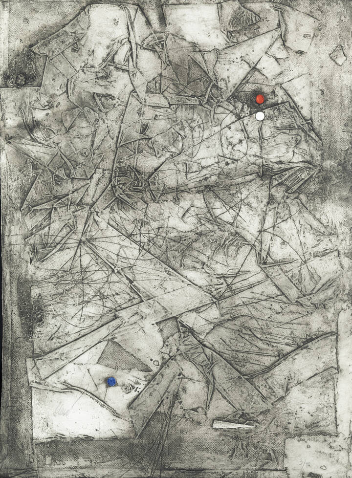 75,5x56 incisione a rilievo e con tre inserti colorati, es. 3/80
