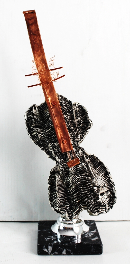 M'HORO' XX sec. "Violino" Scultura in resina e manico in rame, cm 45x16x6. Esemplare T3/99. Autentica dell'artista su foto.