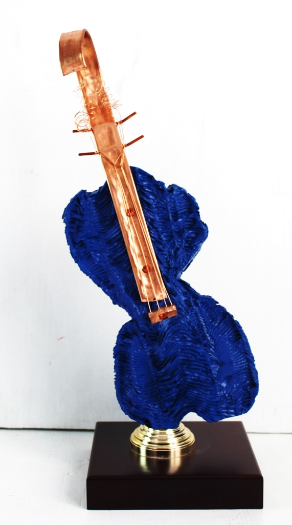 M'HORO' XX sec. "Violino" Scultura in resina e manico in rame, cm 45x16x6. Esemplare T30/99. Autentica dell'artista su foto.