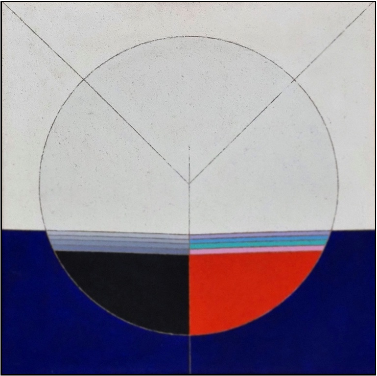 CARMI EUGENIO Genova 1920 - Lugano (SVIZZERA) 2016 "Satellite immaginario" Acrilico su tela grezza cm 70x70 del 1992. Sul retro firmato, datato ed intitolato. Autentica su foto a cura della Finarte Milano.