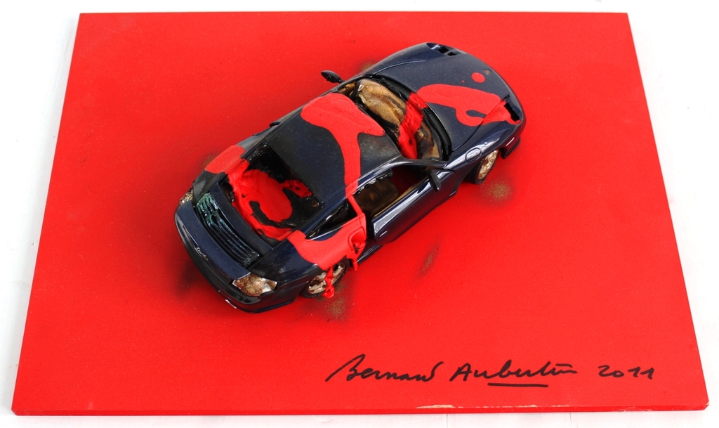 AUBERTIN BERNARD Fontenay aux Roses (FRANCIA) 1934 - GERMANIA 2015 "Senza titolo" Tecnica mista su vettura bruciata cm 40x30 del 2011. Firmata e datata sul fronte in basso a destra. Archivio Rosenberg. Opera pubblicata sul catalogo "Voitures dans le feu" a pag. 163.