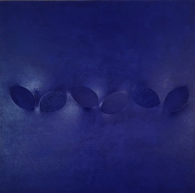 SIMETI TURI Alcamo (TP) 1929 - Milano 2021 "6 Ovali blu" Acrilici su tela sagomata cm 80x80 del 2007. Autentica ed archiviazione su foto a cura dell'Archivio Simeti. Provenienza collezione privata.