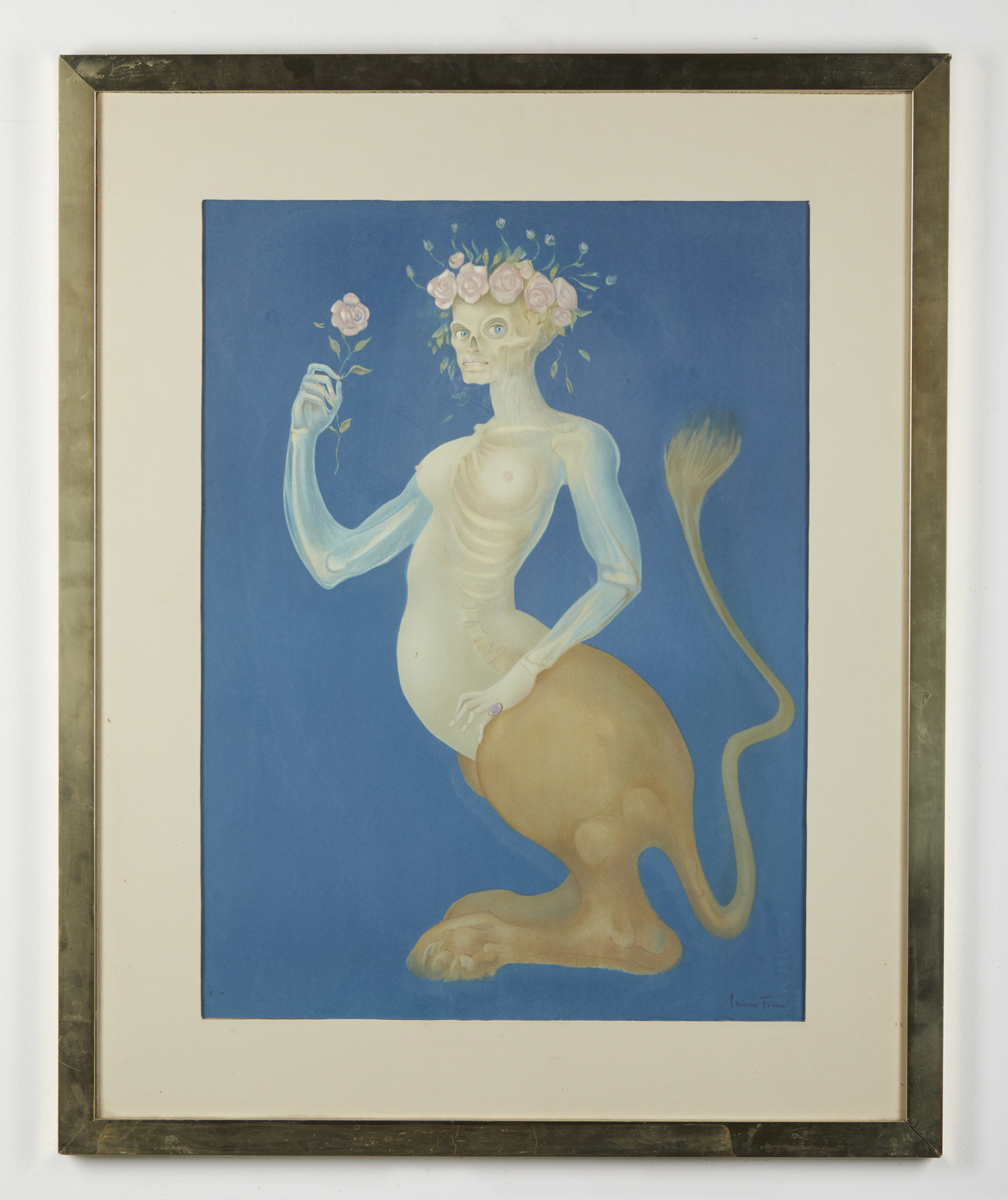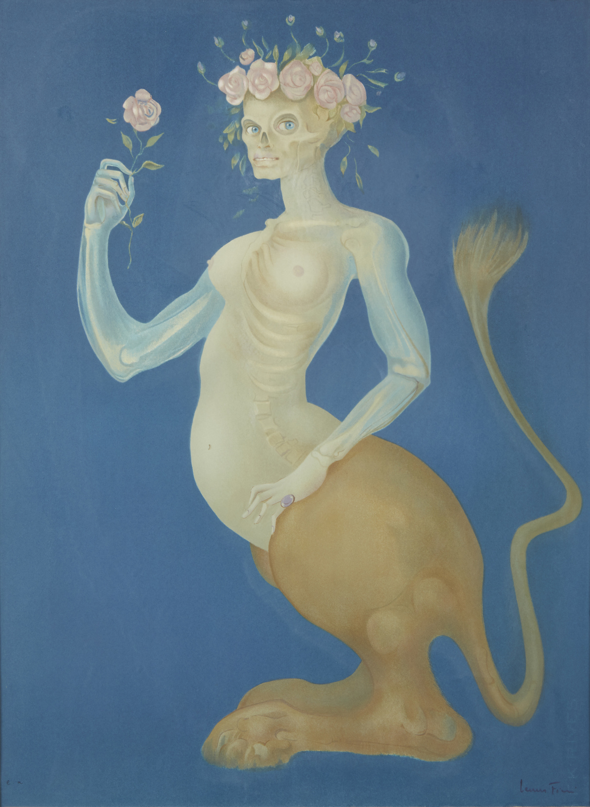 FINI LEONOR (1908 - 1996) La Beauté - Le Sphinx à la Rose. 1974. Litografia a colori. Cm 50,00 x 70,00. E.A. Tiratura e firma in basso a penna. Al retro cartiglio Galleria Marin, Torino. Edizione totale: 185 esemplari numerati da 1/185 a 185/185 ; 20 E.a. +50 esemplari fuori commercio. Lievi difetti. Cornice presente