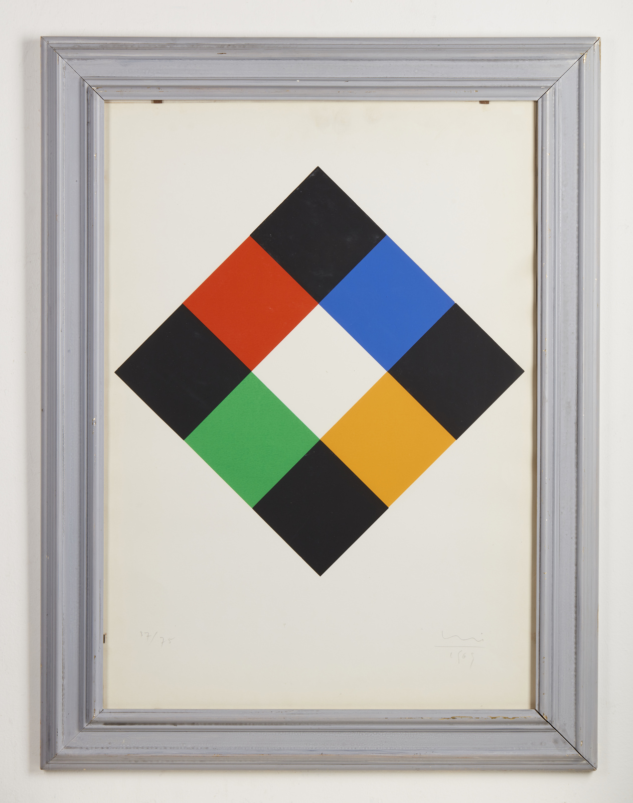 BILL MAX (1908 - 1994) Senza titolo. 1969. Serigrafia. Cm 50,00 x 70,00. 37/75. Tiratura, firma e anno in basso a matita. Esposizione: Galleria La Polena, Genova, 1969 (altro esemplare). Lievi difetti. . Cornice presente