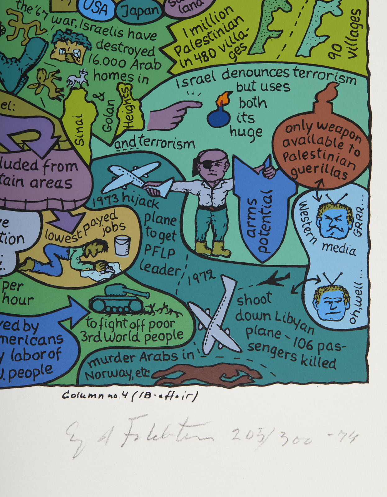 FAHLSTROM OYVIND (1928 - 1976) Column no. 4 (IB-affair). 1974. Serigrafia. Cm 56,50 x 76,00. 205/300. Tiratura, firma e anno in basso a destra a matita. Titolo su lastra. Edizione totale: 300 esemplari Stampatore: Domberger KG, Bonlanden. Editore: Die Zeit, Berlin. Sitografia: http://www.fahlstrom.com/graphics-multiples/16-column-no-4-ib-affair