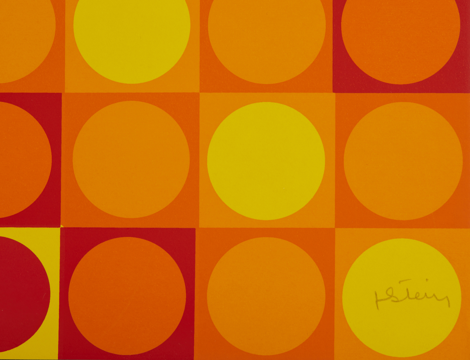 STEIN JOEL (1926 - 2012) Senza titolo. 1975. Serigrafia. Cm 69,00 x 69,00. 109/150. Tiratura e firma in basso a matita. Dalla cartella GRAV groupe de recherche visuelle realizzata in occasione della mostra retrospettiva, Lago di Como, 20/30 settembre 1975 a cura di Luciano Caramel del Groupe de Recherche d'Art Visuel ( Garcia Rossi, Le Parc, Morellet, Sobrino, Stein, Yvaral). Editore: Galleria Team Colore, Milano. Stampatore: Sam Villa, Milano. Cartella non completa.