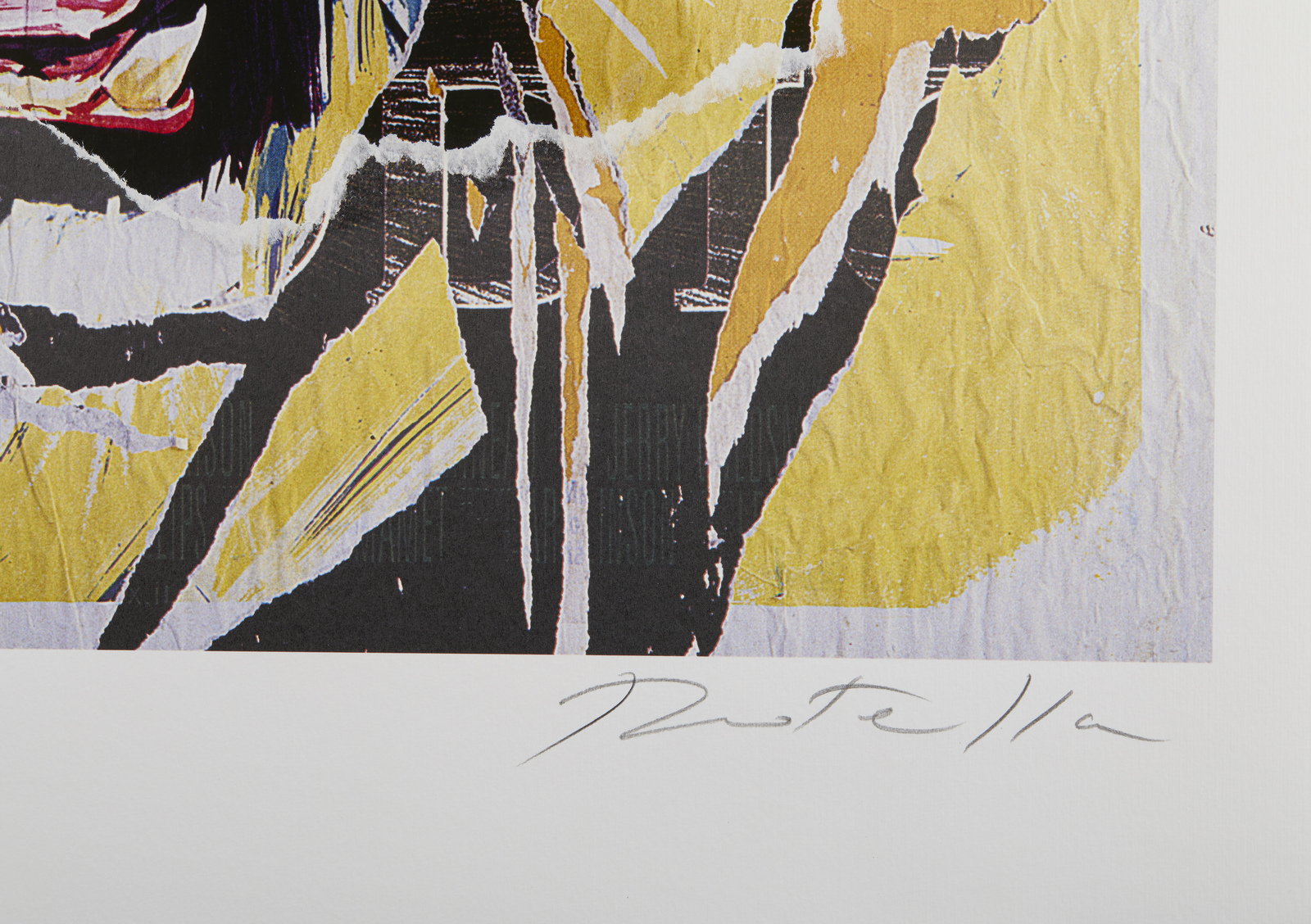 ROTELLA MIMMO (1918 - 2006) Circo Orfei. Serigrafia e decollage su carta. Cm 70,00 x 100,00. P.A. Tiratura e firma in basso a matita. Timbro a secco della Fondazione Rotella, Millano in basso a sinistra. Pubblicazione: Mimmo Rotella multiples décollages a cura di Elena Pontiggia, Silvana Editoriale, p.104