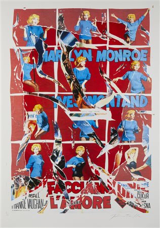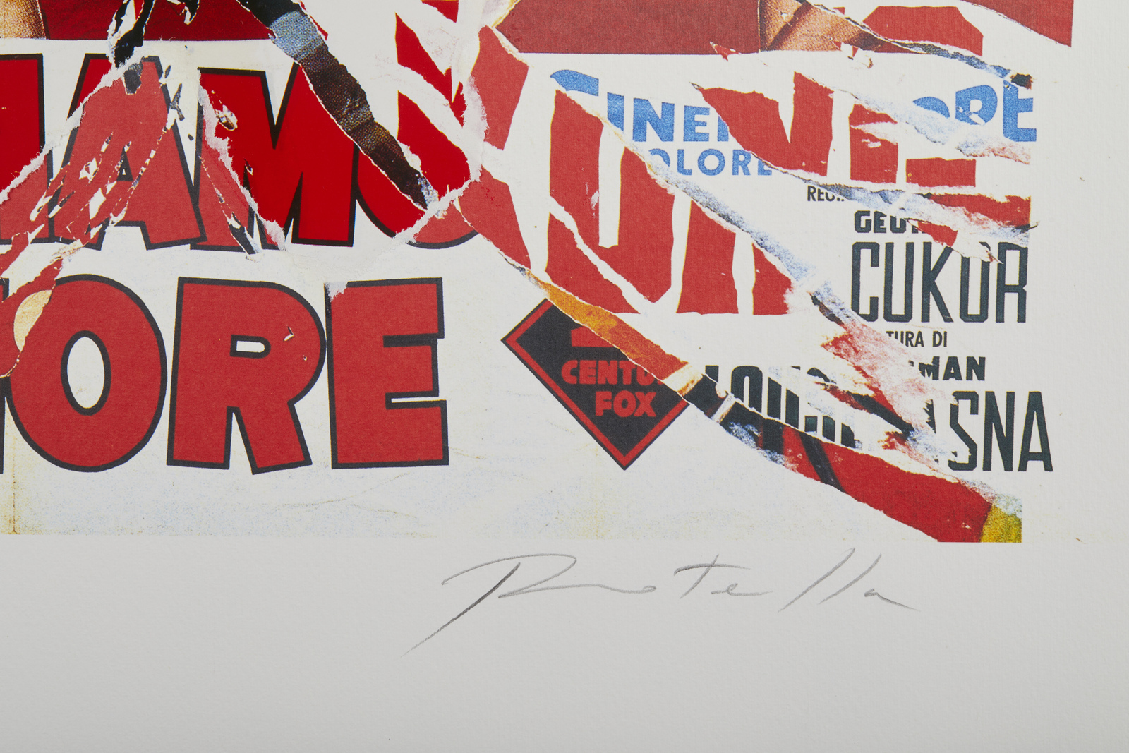 ROTELLA MIMMO (1918 - 2006) Facciamo l'amore. Serigrafia e decollage su carta. Cm 70,00 x 100,00. P.A. Tiratura e firma in basso a matita. Timbro a secco della Fondazione Rotella, Millano, in basso a sinistra. Pubblicazione: Mimmo Rotella multiples décollages a cura di Elena Pontiggia, Silvana Editoriale, p.62