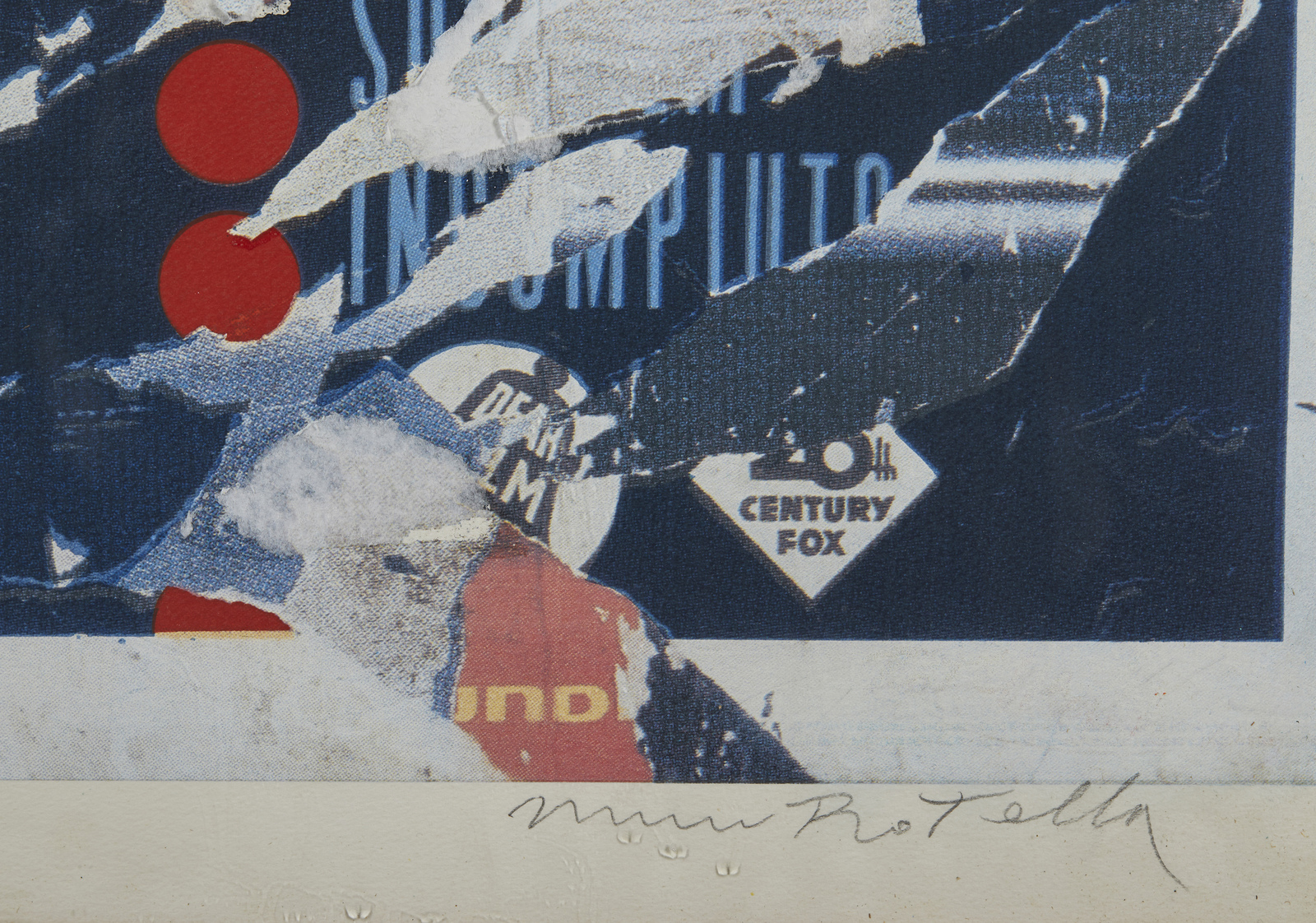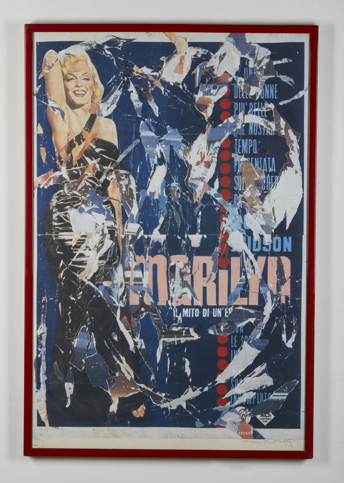 ROTELLA MIMMO (1918 - 2006) Marilyn. 1965. Serigrafia e collage. Cm 76,50 x 117,00. P.a. Tiratura e firma in basso a matita. Al retro firma e anno. Opera proveniente dall'edizione 'Antologia' composta da 18 serigrafie e collages. Edizione totale: 100 Esemplari + P.a. Cornice presente