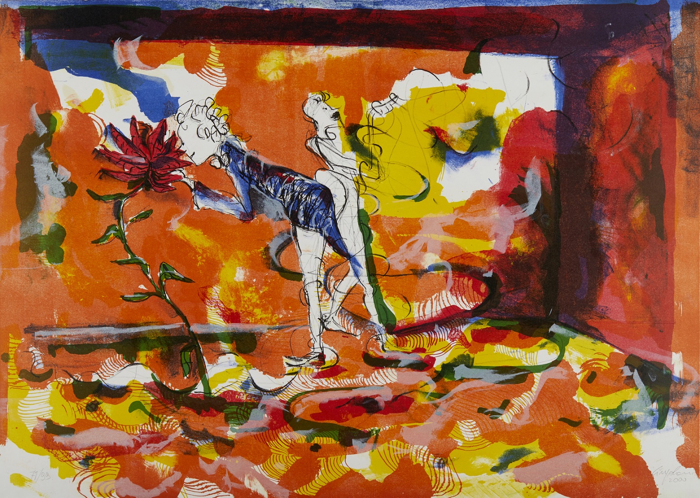 CINGOLANI MARCO (n. 1961) Wilde & Nietsche. 2000. Serigrafia. Cm 70,00 x 50,00. 71/99. Tiratura, firma e anno in basso a matita.