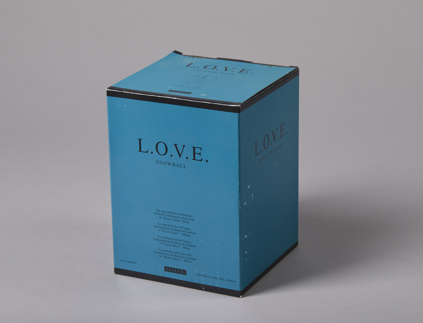 CATTELAN MAURIZIO (n. 1960) Snowball L.O.V.E. . Vetro e resina. Cm 11,00 x 17,00 x 11,00. Riproduzione dell' opera monumetale di Maurizio Cattelan piazza affari. Prodotta da Seletti in 2000 esemplari in occasione di Milano design week 2014.