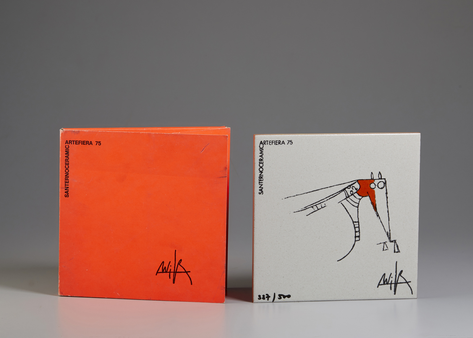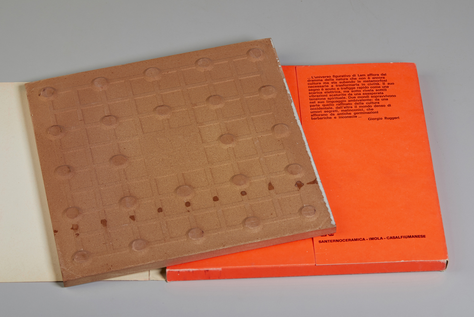 LAM WILFREDO (1902 - 1982) Senza titolo. 1975. Serigrafia su ceramica. Cm 20,00 x 20,00. 387/500. Tiratura a pennarello in basso a sinistra. Firma a stampa in basso a destra. Santerno Ceramica, Imola, per Artefiera 75.