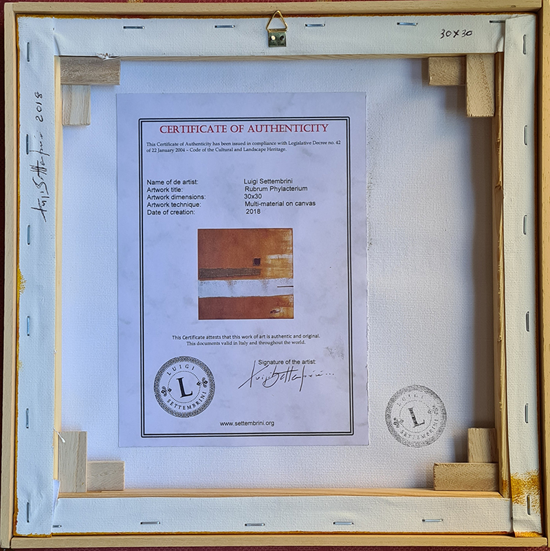 Certificazione: Certificato di autenticità rilasciato dall'Artista