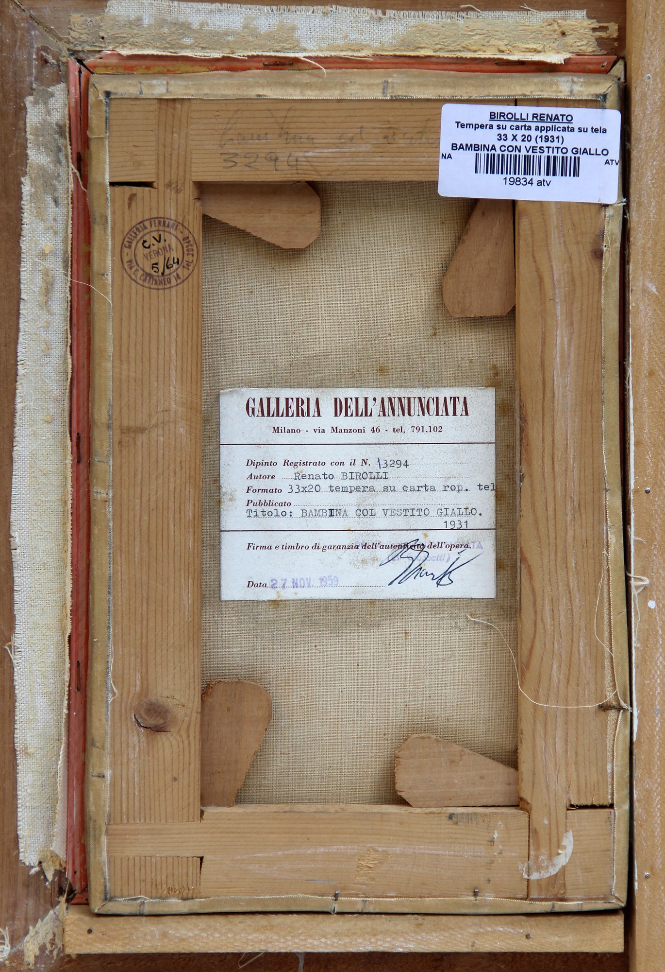 Etichetta della Galleria dell'Annunciata, Milano;