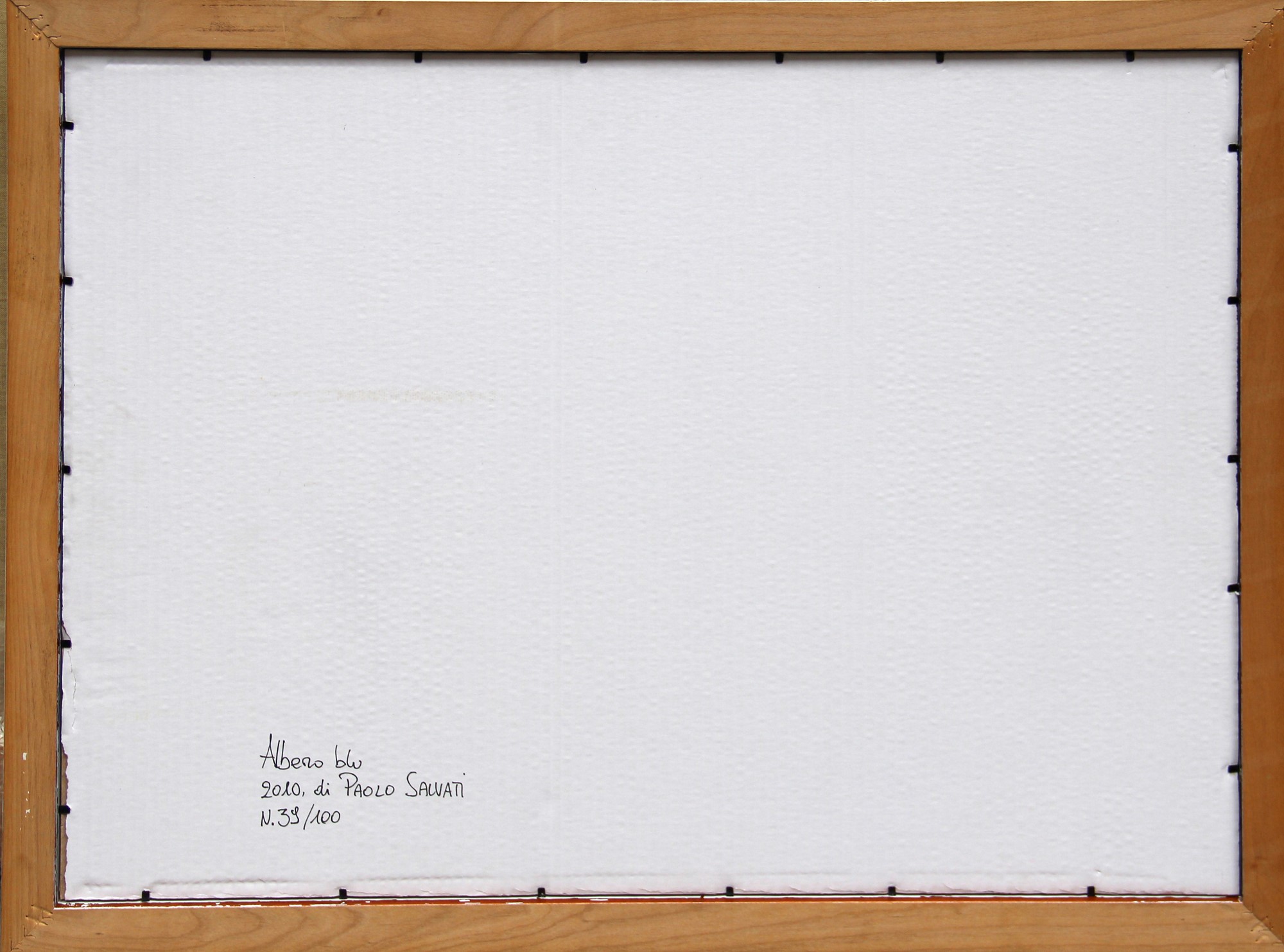 Titolo, data, firma, numerazione "Albero blu, 2010, di Paolo Salvati, n. 39/100" (al retro)