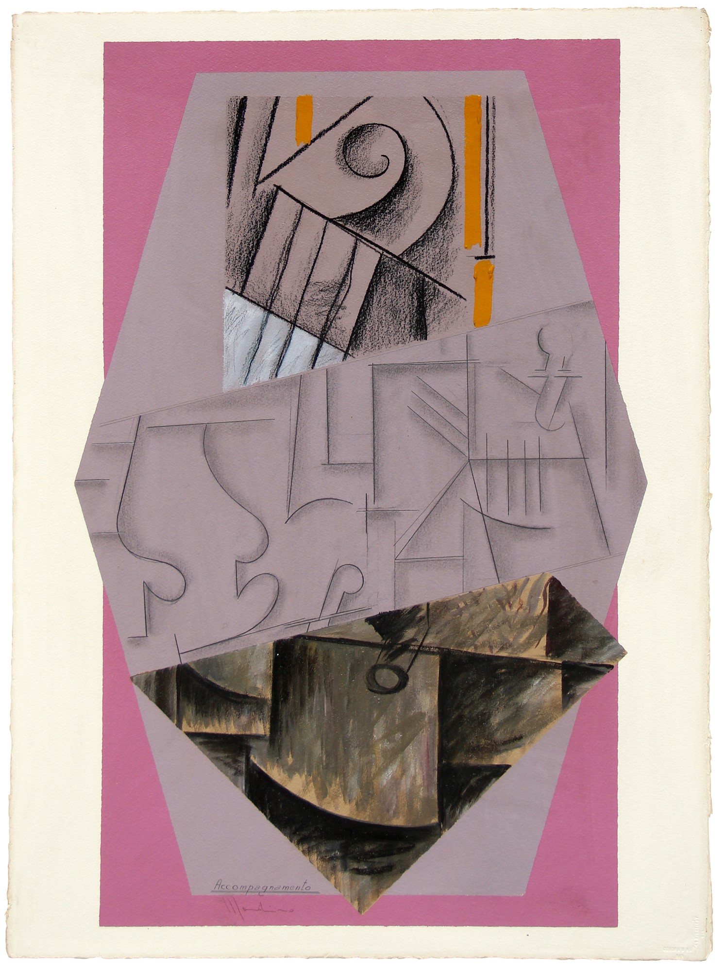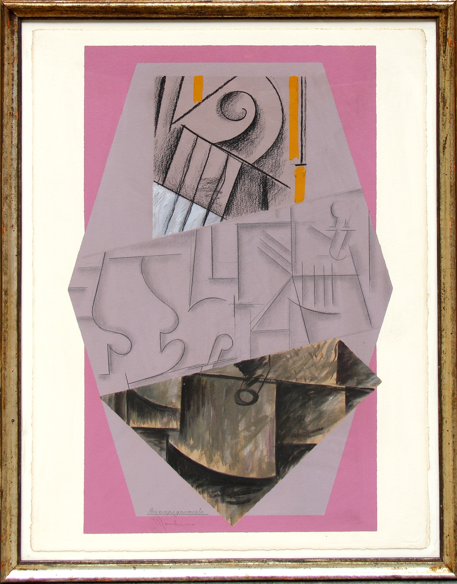 MONDINO Aldo, Accompagnamento, anni 70, tecnica mista su cartoncino, cm 77x57