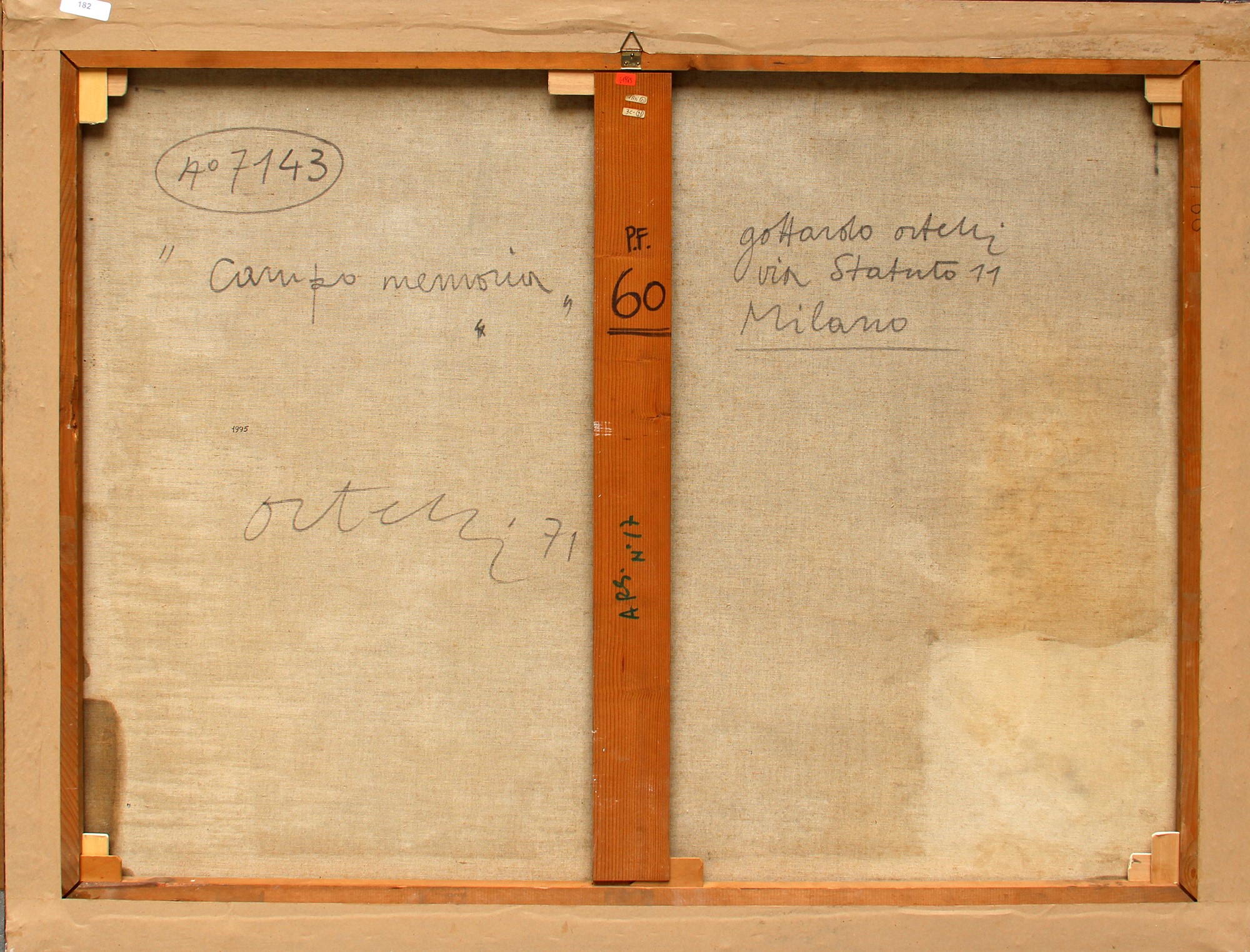 Titolo, luogo, firma, data "Campo memoria, Via Statuto 11 Milano, Ortelli, 71" (al retro)