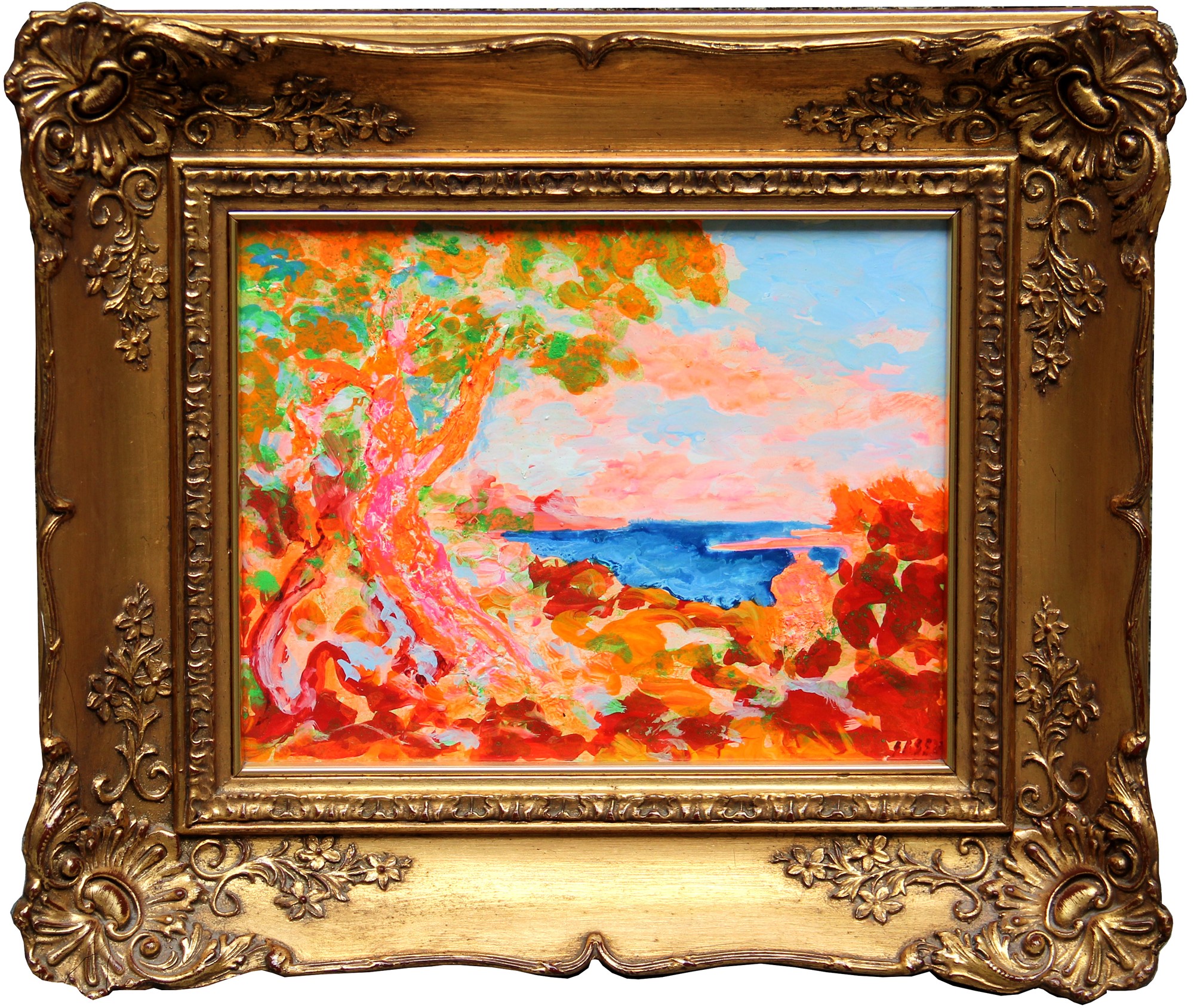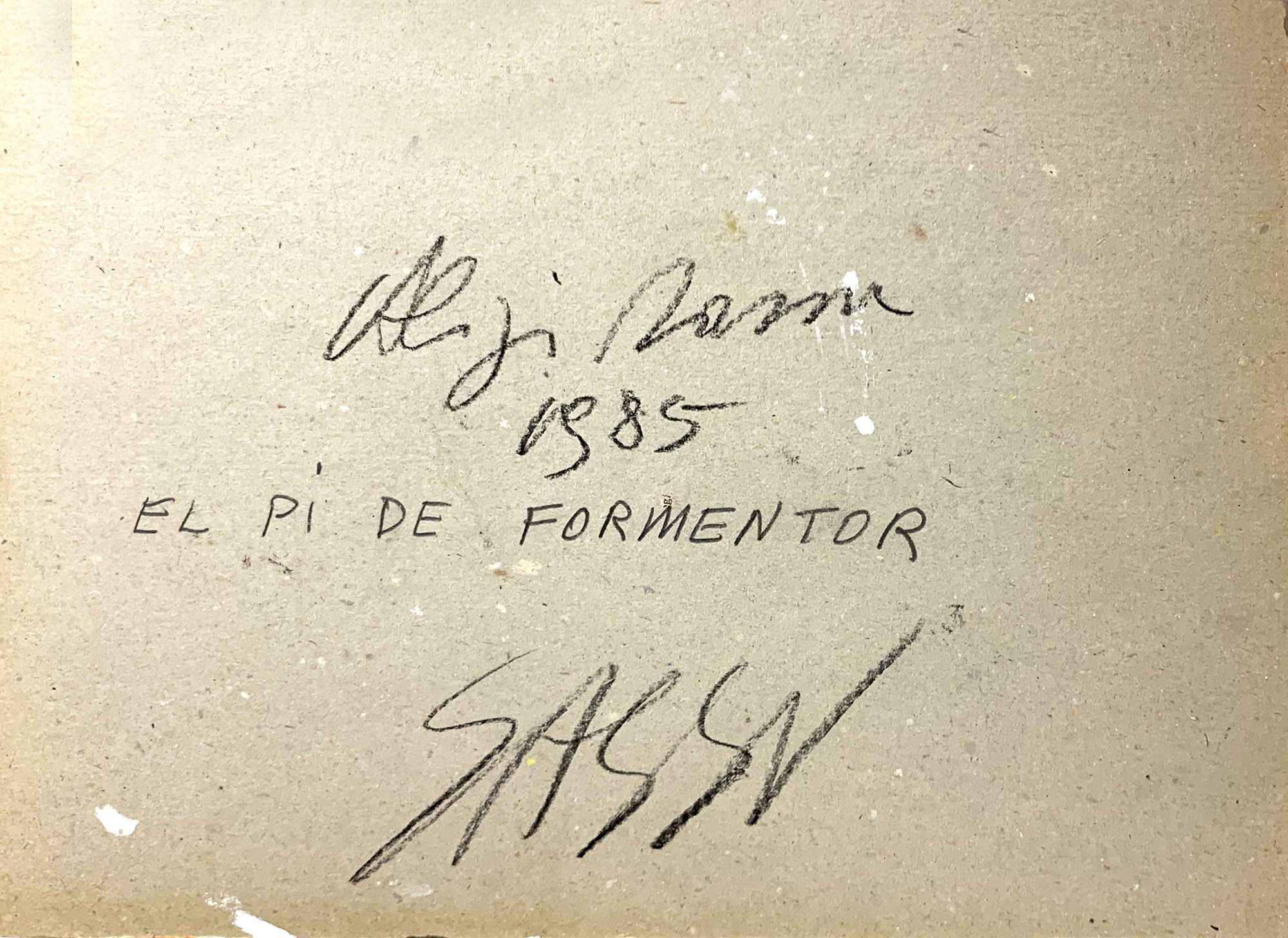 Firma, data, titolo, firma "Aligi Sassu, 1985, El pi de Formentor, Sassu" (al retro)
