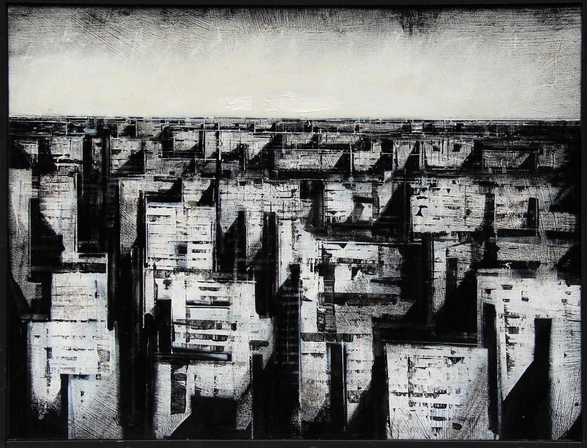 GUAITAMACCHI Jonathan, Senza titolo, 2002, tecnica mista su cartoncino applicato su tela, cm 60x80