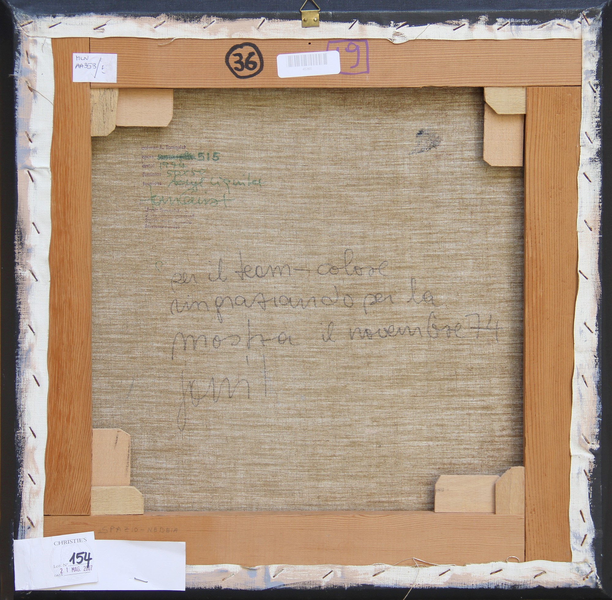etichetta di Christie's (al retro)